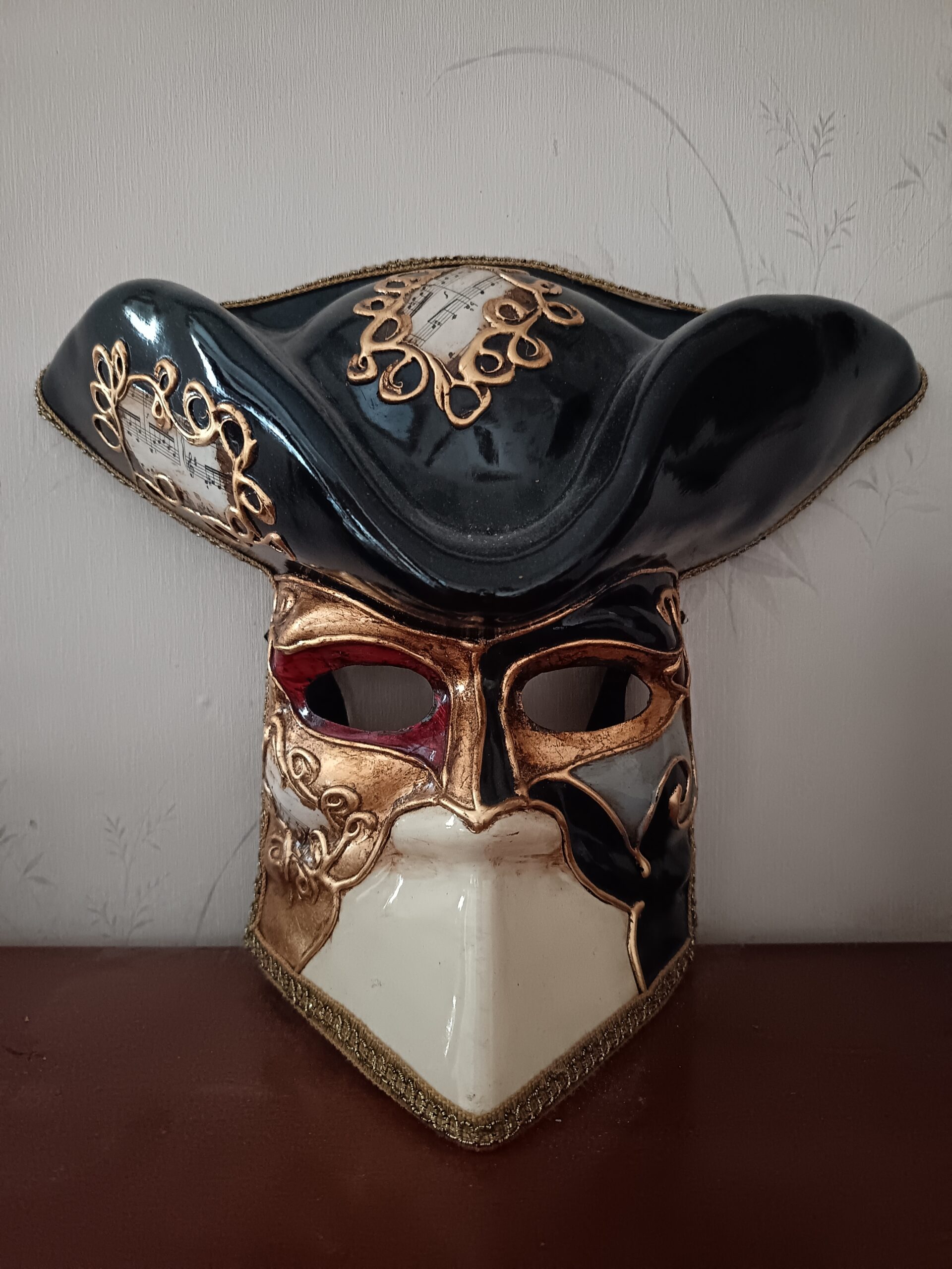 Perhaps you’re wondering about the reason for the mask image. First of all, it’s a Venetian “bauta“—a work of art to me. I’m fascinated by them, and many are well-made. Why the mask? Because if the opportunity ever arose to form a band and play live, well, I would do it in a costume and mask because seeing myself on video would embarrass me. The mere thought that I could see myself on video would condition my experience on stage, burdening me with unnecessary stress. The only shame is that I can’t wear the bauta, or at least the one in the photo, because it’s just an ornament, but I have plenty of others that serve their purpose well, and I hope to show them to you sooner or later.